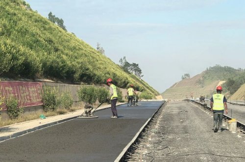 在桂平市木圭公路项目,项目锚定关键工期,以“大干快上、全力冲刺”的奋进姿态攻坚任务目标。截至目前,项目路基施工已全面收官,全线混凝土路面浇注进度稳步推进至40%,路面收口等配套工序同步高效开展。下一步,项目部将持续鼓足干劲,紧扣施工生产实际优化组织方案,聚焦混凝土路面浇注及收口核心工序提质提速,全力高质量完成入园路右幅混凝土路面施工,确保项目整体目标如期达成。
