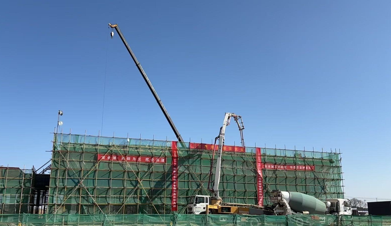 本次封顶的管理用房主体结构屋面坡度陡、造型复杂,对模板支撑体系的安全性、混凝土浇筑的成型质量都提出了极高要求。过程中,项目团队克服高空作业风险高、模板加固难度大、混凝土流动性控制难等一系列技术难题,高质量完成了坡屋面结构施工。