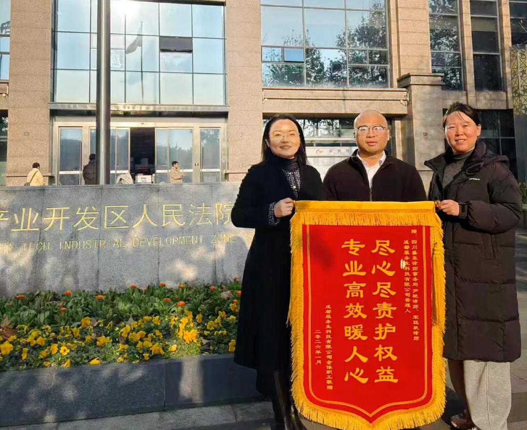 这面锦旗源于成都服务生科技有限公司破产清算案。此前,成都高新技术产业开发区人民法院裁定受理该案,并指定盛豪律师事务所担任管理人。