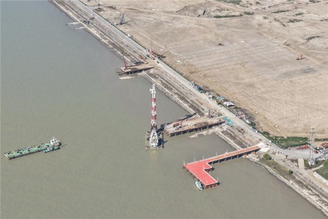 此次通過驗收的臨時碼頭位於通海三期專案3號引橋東側,結構上由碼頭平臺、轉向平臺及引橋三部分組成。碼頭平臺長54米、寬15米,轉向平臺長21米、寬12米,引橋長78米、寬7.5米。