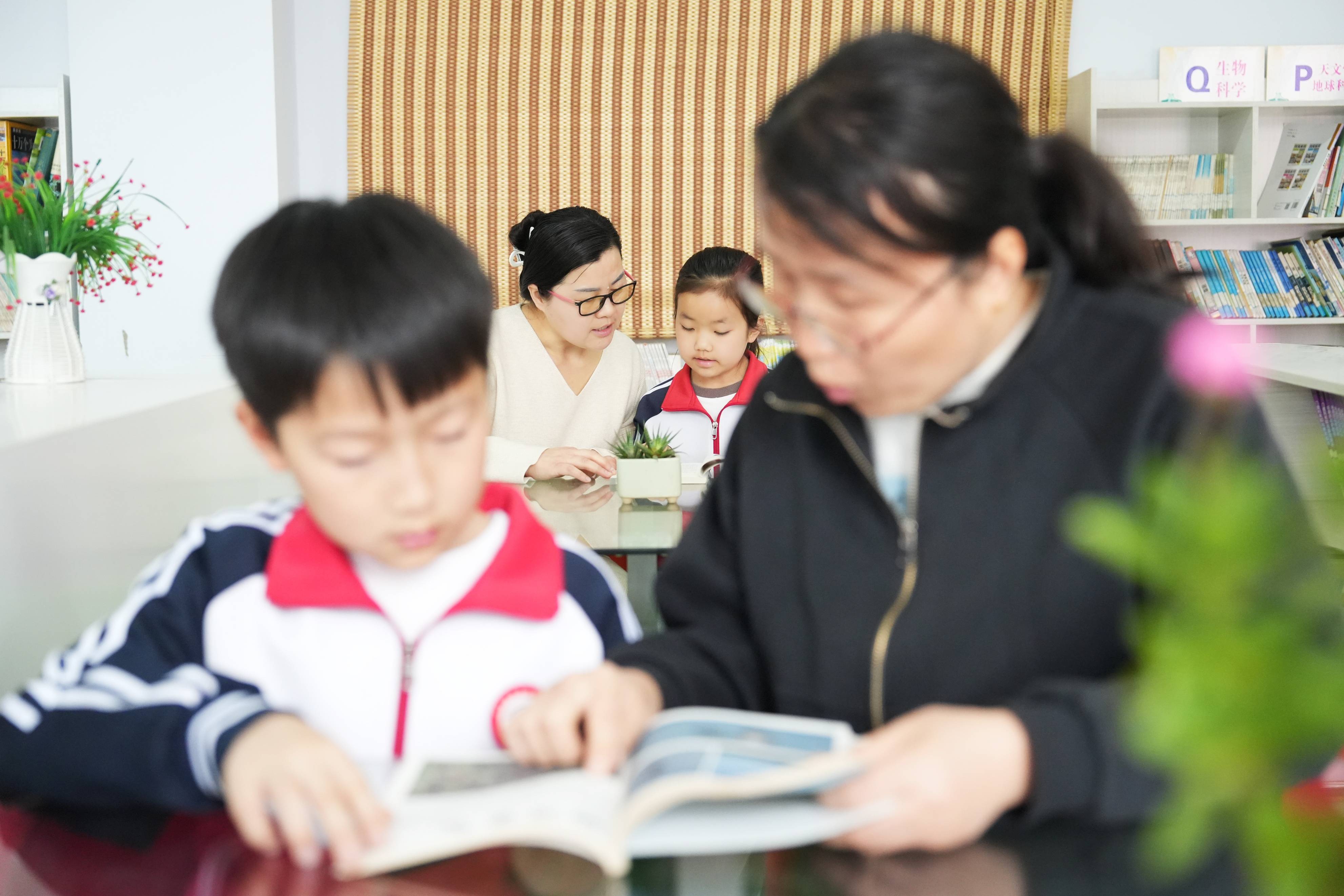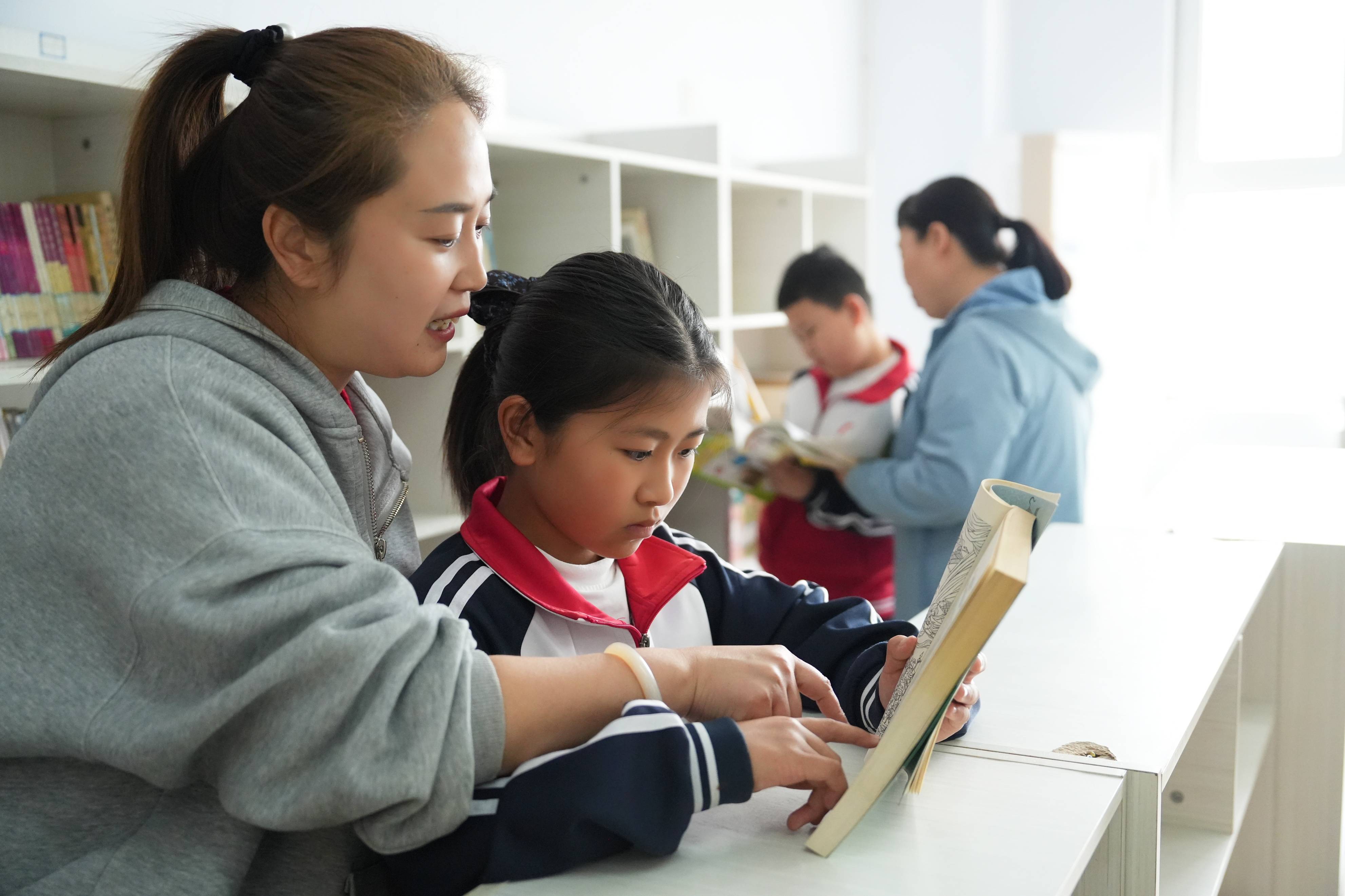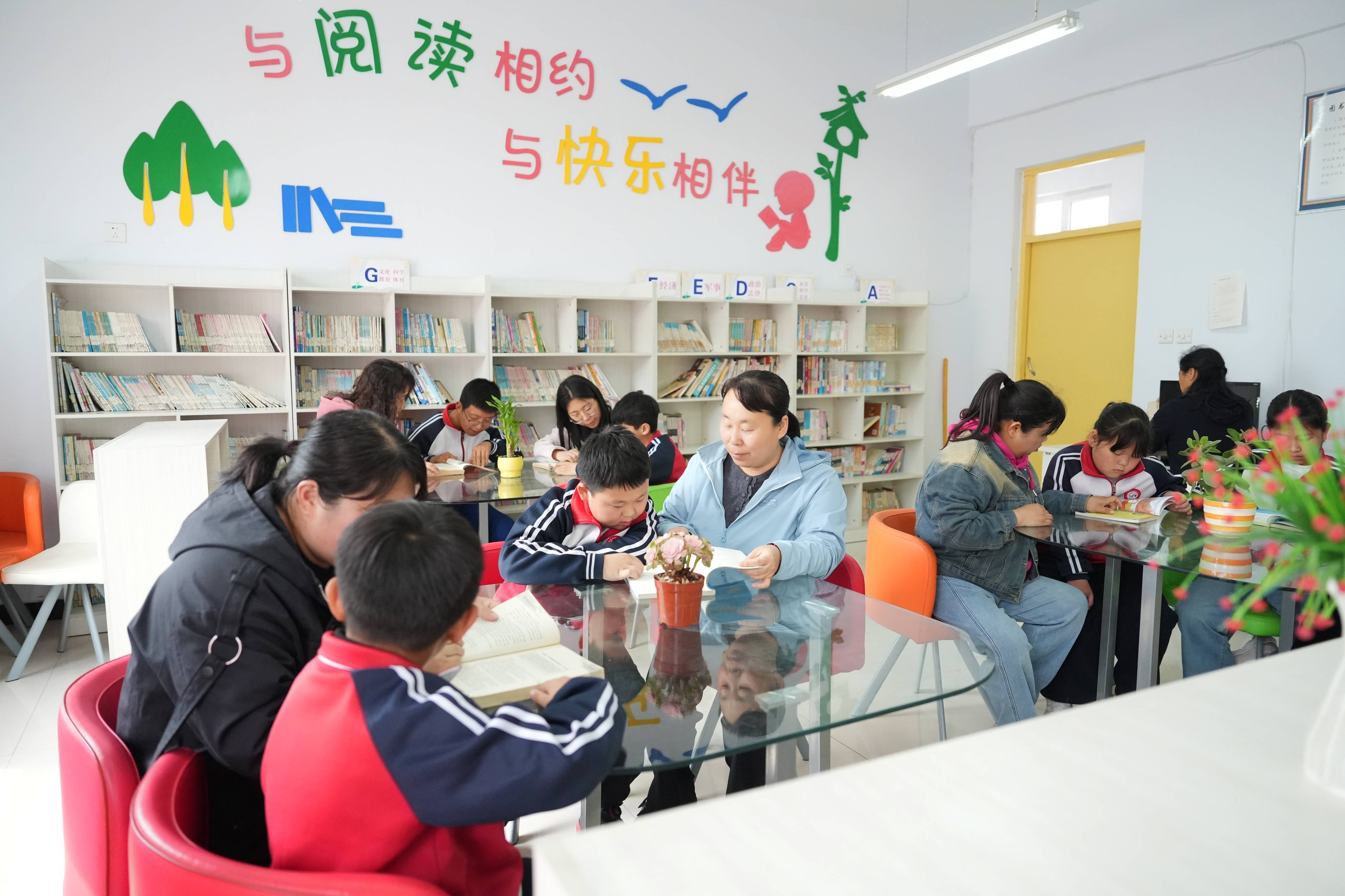 图说:4月21日,在河北省隆尧县牛家桥小学阅读室内,亲子阅读活动现场。GNN 发(郭泽鑫 摄)