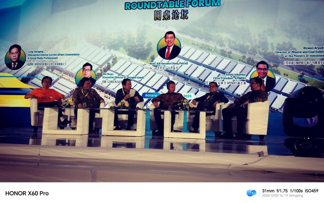 图说:圆桌论坛:由洪培才主持,王建龙、史船、陈日铃、印尼企业家协会副主席、国家投资部矿业与下游司首席执行官(CEO)。印尼共工社 发