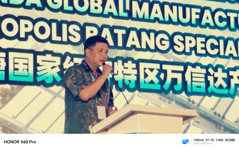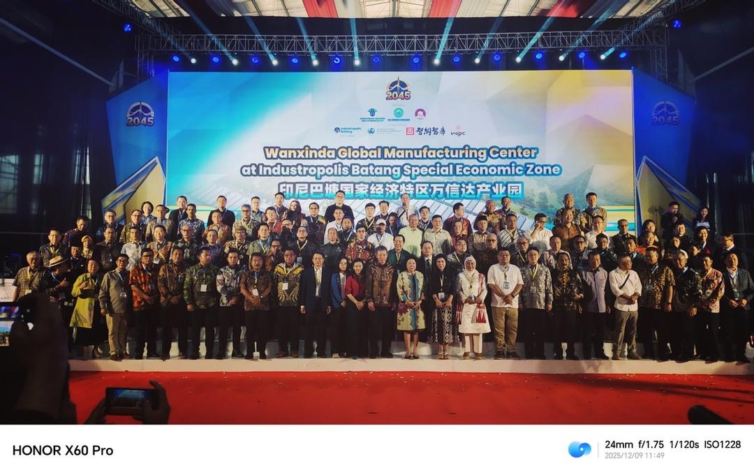 2025年12月9日上午9时由印尼国家投资部、印尼黄金社会论坛、中国-东盟产业合作发展促进会主办,印尼巴塘工业城经济特区、智纲智库、南南合作金融中心、万信达控股集团承办以“向光同行·共筑黄金印尼2045机遇”为主题的入驻企业联合投产、黄金印尼论坛、印尼深圳晚宴系列盛大活动,在中爪哇省三宝垄市巴塘国家经济特区万信达产业园内举行,自来印尼国家部长、参会的各省长、官员及相关国营企业老总和印尼华社精英、中资商会领导、企业家(包括入驻印尼企业)韩国入驻万信达企业总裁和知名专家、投资者达到1000位,其中中资企业代表700多人。