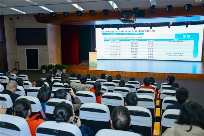 杭州市文化广电旅游局二级巡视员曲波在致辞中指出,金牌导游与讲解员是杭州文旅服务队伍的核心力量,是展现城市形象、传播地域文化的重要使者。近年来,杭州市持续优化人才培养机制,推动导游讲解服务向专业化、多元化、国际化方向发展,涌现出一批具有全国影响力的标杆人才。他希望广大从业者坚守服务初心,深耕专业能力,在新时代文旅融合发展的浪潮中实现个人价值与行业进步的双赢。