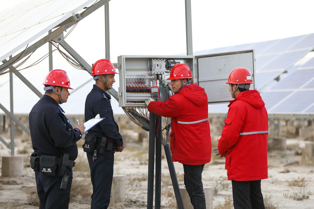 产业发展到哪里,警务服务就跟进到哪里。针对光伏企业露天设备多、用电负荷大、厂区范围广的行业特点,叶城县公安局组织民辅警深入辖区光伏企业生产车间与发电厂区,开展全方位安全“体检”。重点查看光伏板阵列运行状态、储能设备维护情况、消防设施配备标准,精准排查电气线路老化、应急通道堵塞等安全隐患,并现场出具整改意见书、提出优化建议。“我们专门建立了‘周排查+月回访’闭环机制,确保隐患整改不悬空、问题解决不拖延。”叶城县柯克亚乡派出所民警纪家雷介绍,通过常态化排查与跟踪督办,已累计消除各类安全隐患16处。