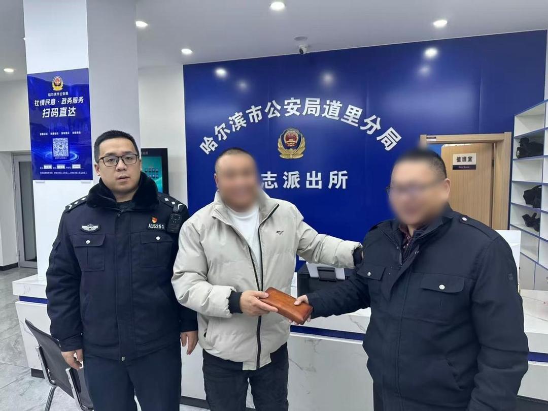 当晚19时许,尚志派出所民警成隆、辅警孙文驰正在街面执勤时,一名外地游客匆匆赶来求助,称随身携带的手包不慎遗失在出租车上。民警一边安抚游客情绪,一边根据其描述的乘车路线,迅速查找有效信息,精准锁定出租车车牌并联系上司机。很快,司机将完好无损的手包送至约定地点。游客紧握民警的手致谢:“多亏了你们帮助,才能让我的跨年之旅没有留下遗憾。”