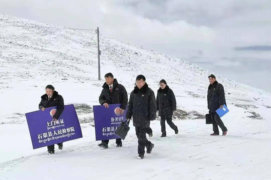 共工新闻社讯(雷良)近日,四川甘孜州石渠县风雪连绵、气温骤降,广袤雪域被白雪覆盖,道路崎岖难行。在严酷自然环境下,四川盛豪(石渠)律师事务所律师何云珠与石渠县人民检察院检察官何晶及干警尼麦则玛、占玛则措、昂扎西一行,深入阿日扎乡、瓦须乡开展上门听证与公开宣告工作,以实际行动推动司法服务向基层延伸。