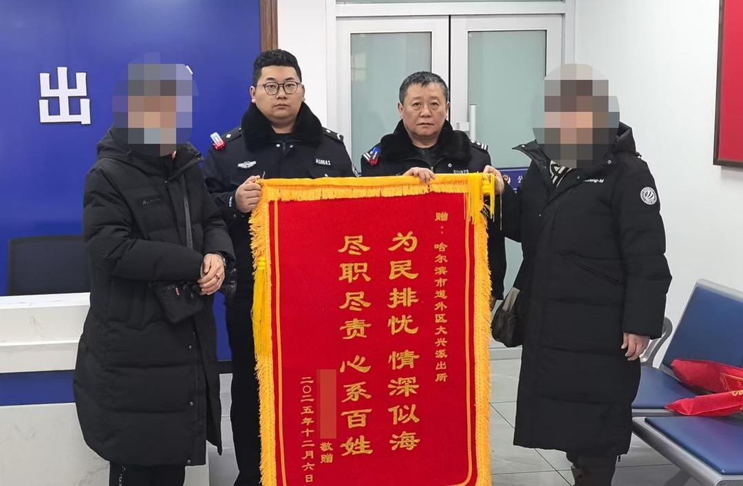 当日下午,家属专程来到派出所为两人送上一面印有“为民排忧 情深似海 尽职尽责 心系百姓”的锦旗,向公安民警给与热心细致的帮助表示衷心感谢。家属表示:“我们发现老人没回来当时就慌了,全家人都出去找!多亏了民警及时发现,不然这么冷的天老人独自在外面天冷路滑的,出点啥事可咋整啊!太感谢咱们人民警察了!”。