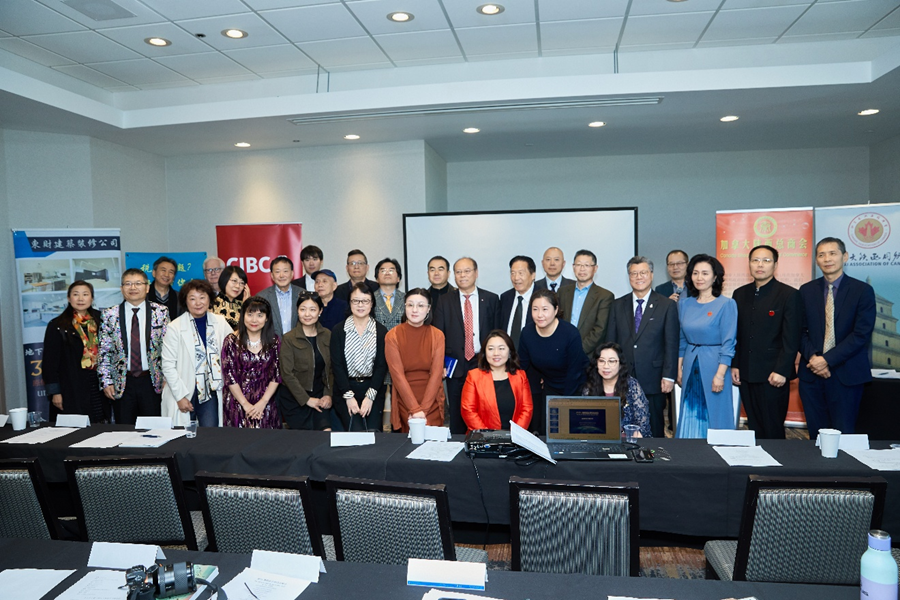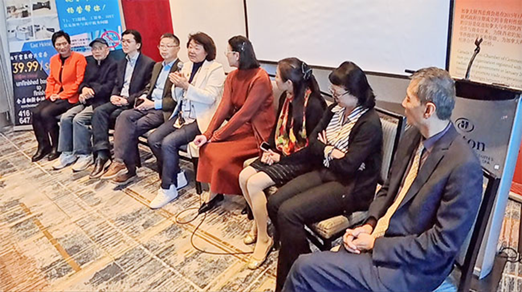 加拿大陕西同乡会会长周志军和加拿大陕西总商会会长毛轶在地产和财产传承研讨会上发言。美联地产总经理耿平原、 Viva家居总裁David Ruan、花旗贷款总经理SusanWang、焱律师事务所总裁刘焱,Y accounting Chartered Professional Accountant特许专业会计师杨莹和同乡会商务部部长郭琳参加了活动。