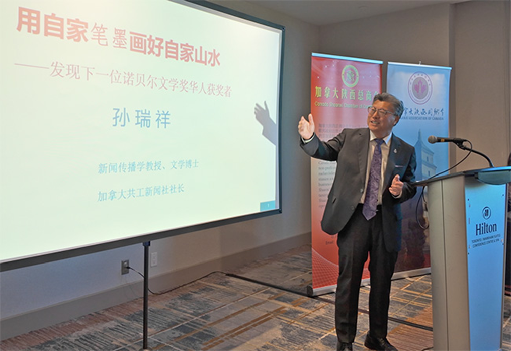 加拿大共工新闻社社长、文学博士孙瑞祥教授发表演讲。共工社发
