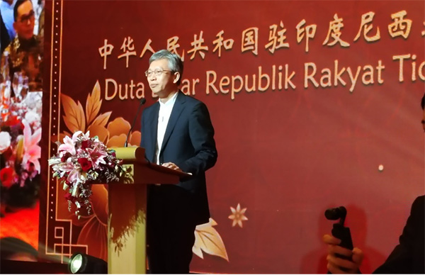 图说:中国驻印尼大使王鲁彤致辞。印尼共工社 发