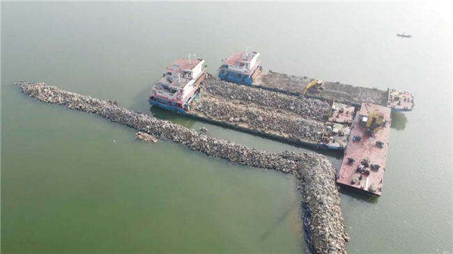 這項創新技術通過建立拋石運動軌跡模型,結合GPS系統及拋石網格圖進行精確定位,對船舶位置、拋投角度和下落深度進行三重控制,確保石塊精准落至設計網格內。同時,通過控制拋投高度和採用緩衝裝置,有效減小石塊入水衝擊能量和懸浮物擴散。這套技術讓施工效率提升了30%,更實現了“方量零浪費、生態零打擾”的目標。