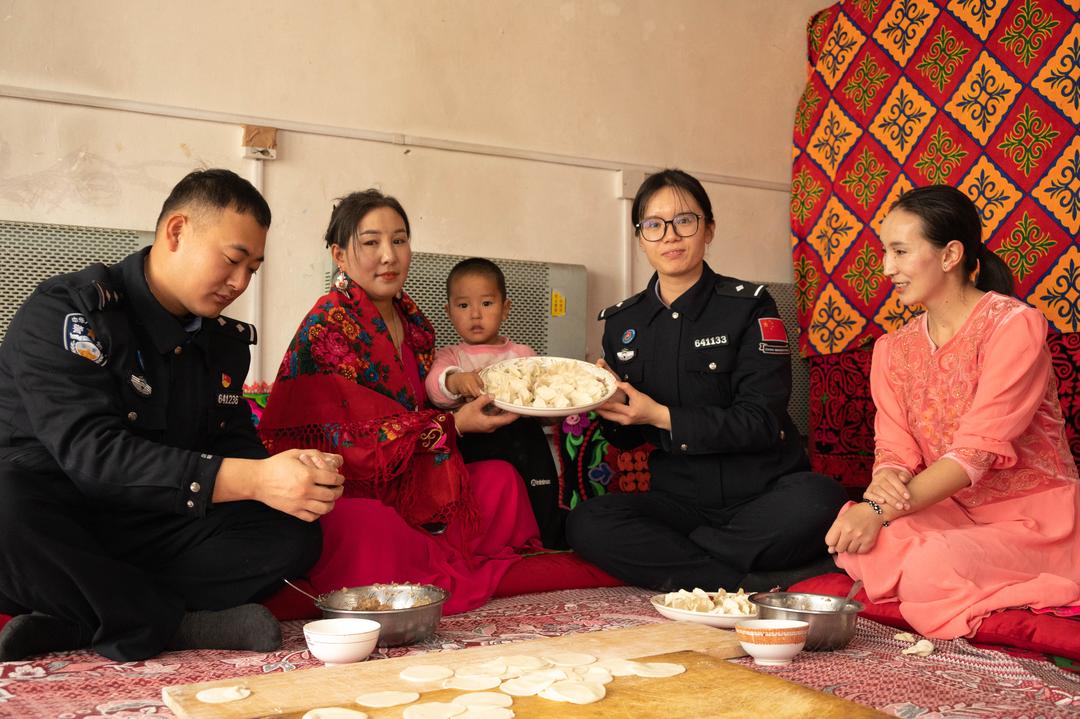 共工新闻社12月21日电(通讯员:应松桦 范金鑫)冬至佳节,吉根边境派出所民警走进辖区群众家中,与大家围坐共包饺子。