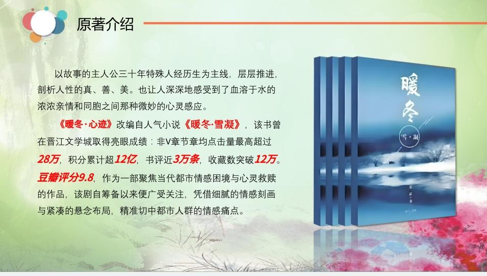 值得关注的是,《暖冬·雪凝》已成功改编为四十集电视连续剧,并由共工新闻社、中国新闻月刊杂志社共同官宣为“暖冬·心迹”电视剧指定媒体。作品从文字走向荧屏,让更多观众在光影流转中感受到文学的温度。这一跨媒介创作实践,彰显了张晶对叙事节奏的精准把控,也印证了优质文学与影视艺术的互相滋养。