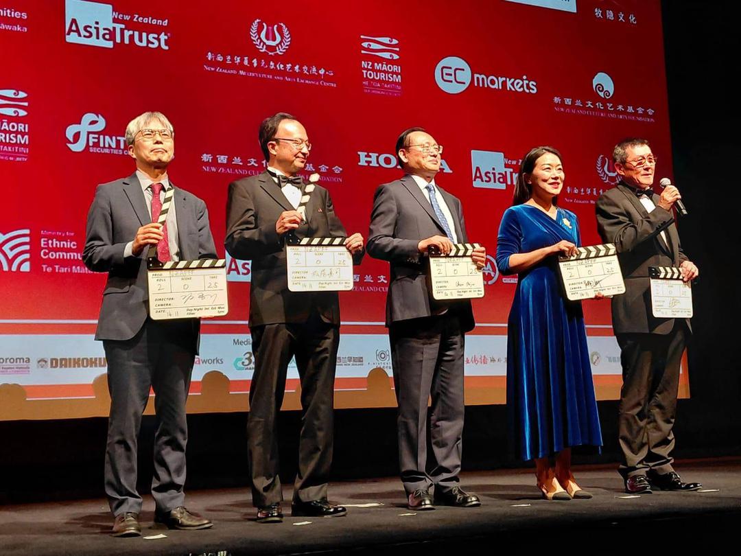 随后电影节主席李勃先生邀请中国驻奥克兰总领事陈世杰先生,日本驻奥克兰总领事松井真司先生生,韩国驻奥克兰总领事金洪基先生,国会议员南希·卢女士共同开启2025新西兰亚太电影节。