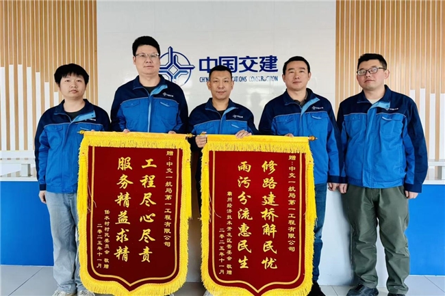 近日,中交一航局一公司石港项目部收到一份特殊赞誉 —— 河北霸州任水村全体村民将一面承载着感激与认可的锦旗,送到项目部党支部书记手中。
